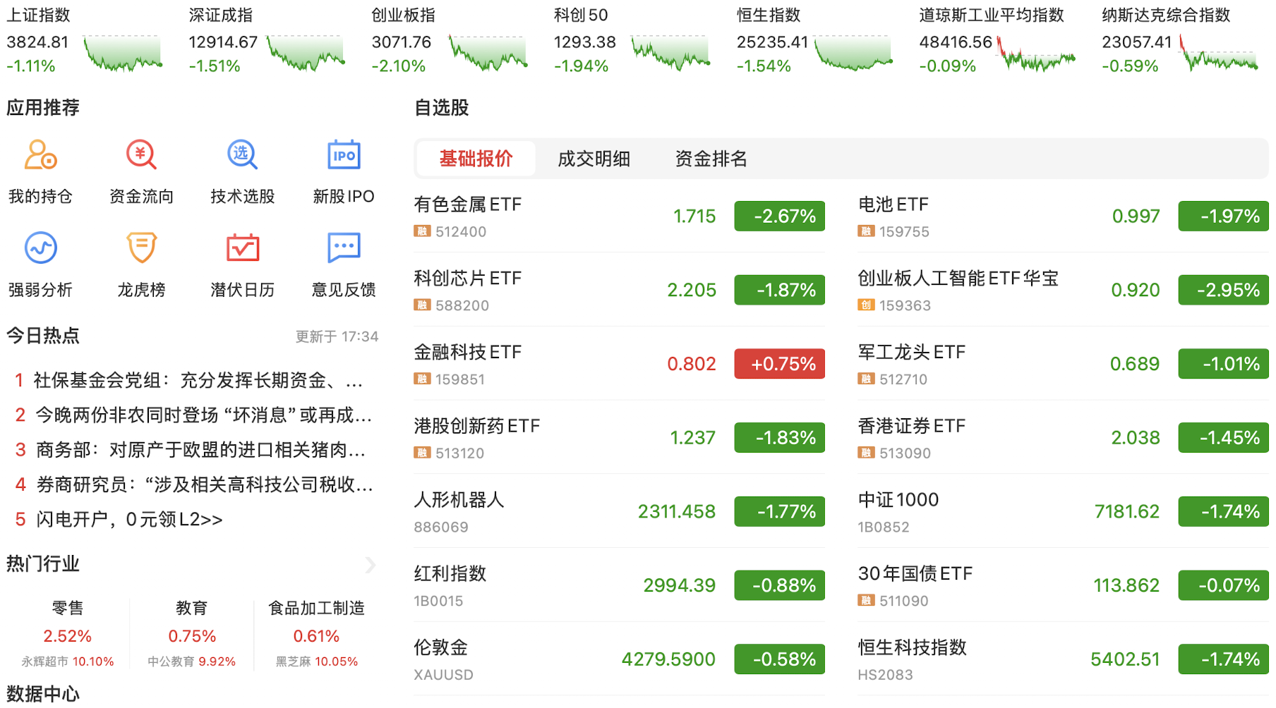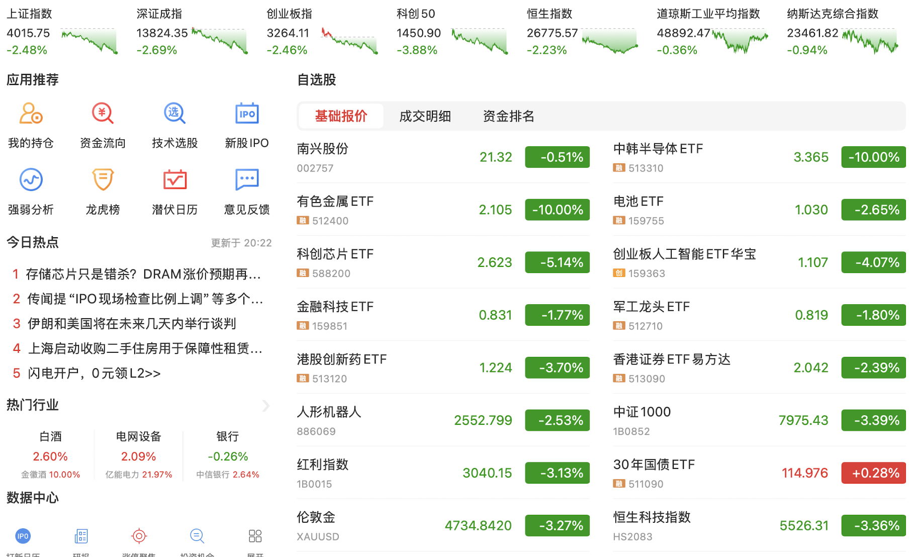 周五晚贵金属创历史下跌,杠杆资金爆仓疯狂踩踏,情绪传导带崩A股,目前资源股大跌是正常的价值回归,而科技股是错杀,继续积极布局科技和非银金融。