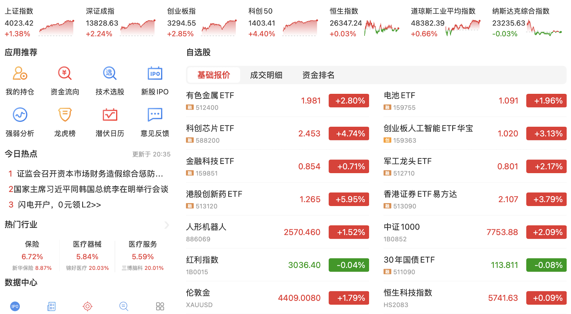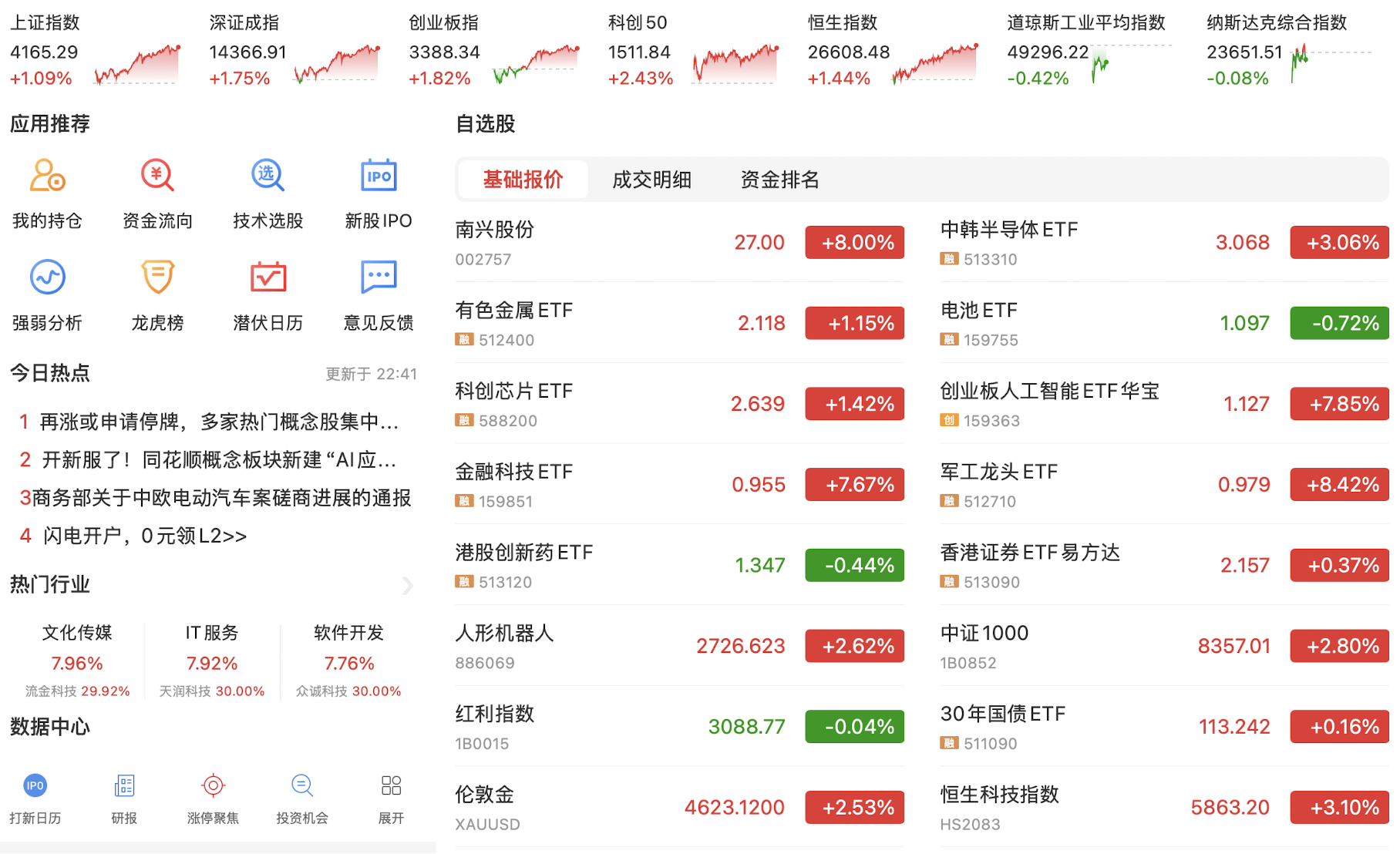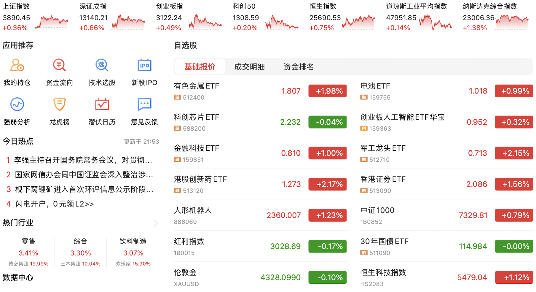 每天都在见证历史,今天上午资金疯狂涌入,直接把上交所服务器干崩溃了…导致今日上证指数和科创50指数在10点之后几乎无法成交,资金转头拉动股指期货和深证成指和创业板指,创业板指盘中最高涨近12%。目前的策略是尽早离开红利股,金融科技在本周大都上涨超50%,不宜追逐,逐渐布局还在次低位的科技股,尤其科创50和人工智能概念股。
