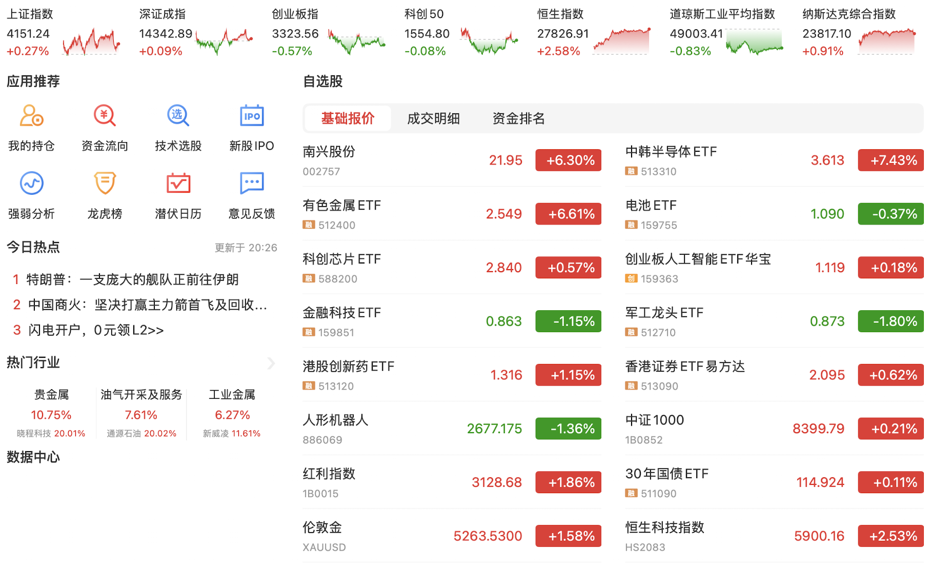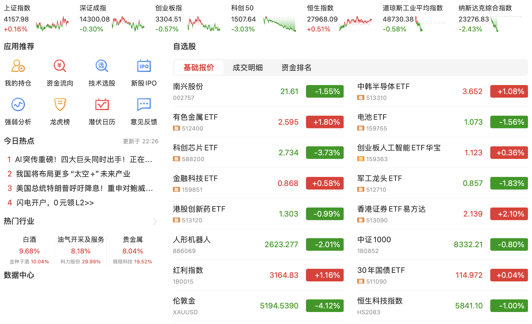题材弱势,资源股继续狂飙,暂时规避黄金白银,待伦敦金回落黄金股也会有大幅杀跌,继续布局半导体、AI应用等。